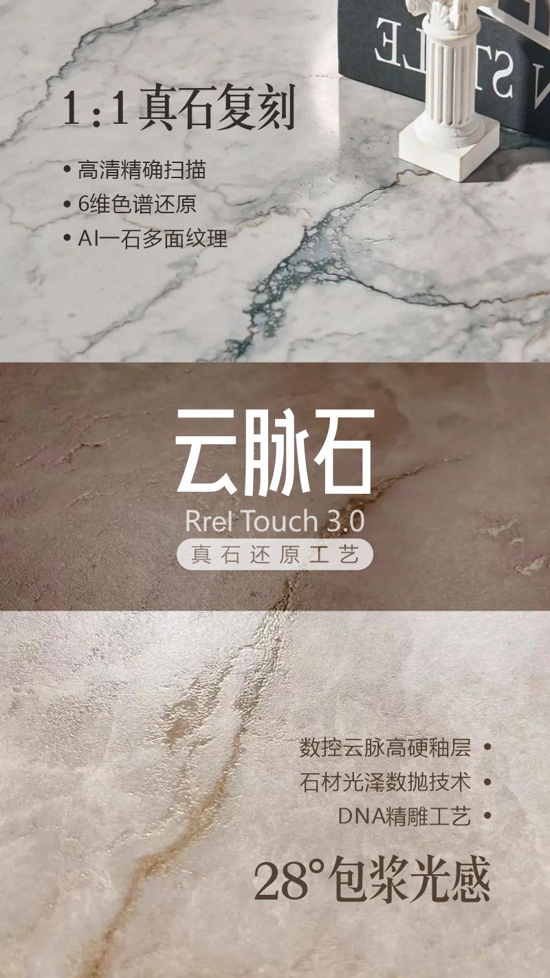 從色彩、紋路、肌理、觸感、光澤,五大維度還原天然真石質(zhì)感。數(shù)控云脈高硬釉層疊加多種干粒一次融燒,結(jié)合石材光澤數(shù)拋技術(shù),形成28°仿天然石材包漿光澤,視覺柔和舒適、觸感溫潤如玉。